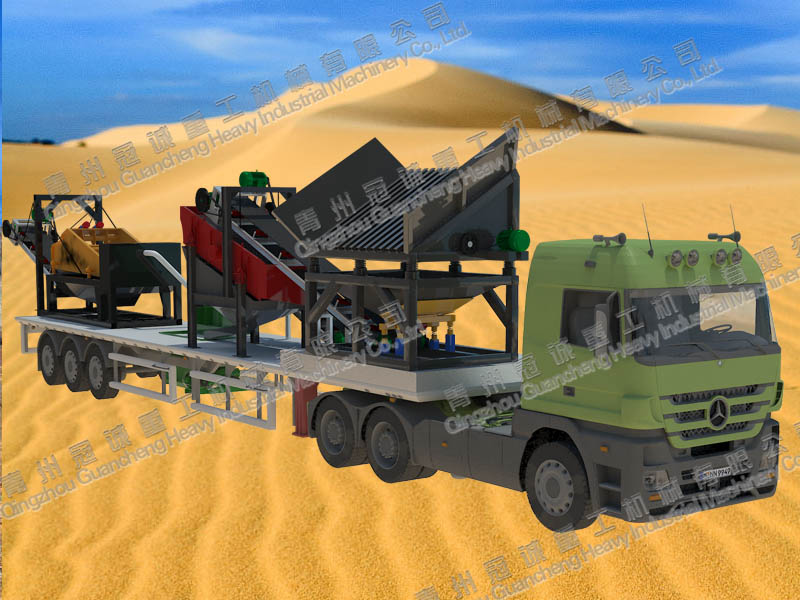 本套移動(dòng)破碎站為移動(dòng)式三次分離破碎制砂設(shè)備,處理量為每小時(shí)60-100立方,本移動(dòng)破碎制砂設(shè)備是青州冠誠(chéng)重工機(jī)械有限公司獨(dú)立設(shè)計(jì)制作而成,直接采用17.5米半掛車底盤改裝制作,基優(yōu)勢(shì)如下: